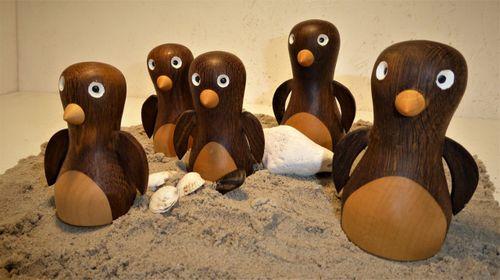 Også pingvinerne laves i røget eg, hvor forsiden er ahorn eller ask.