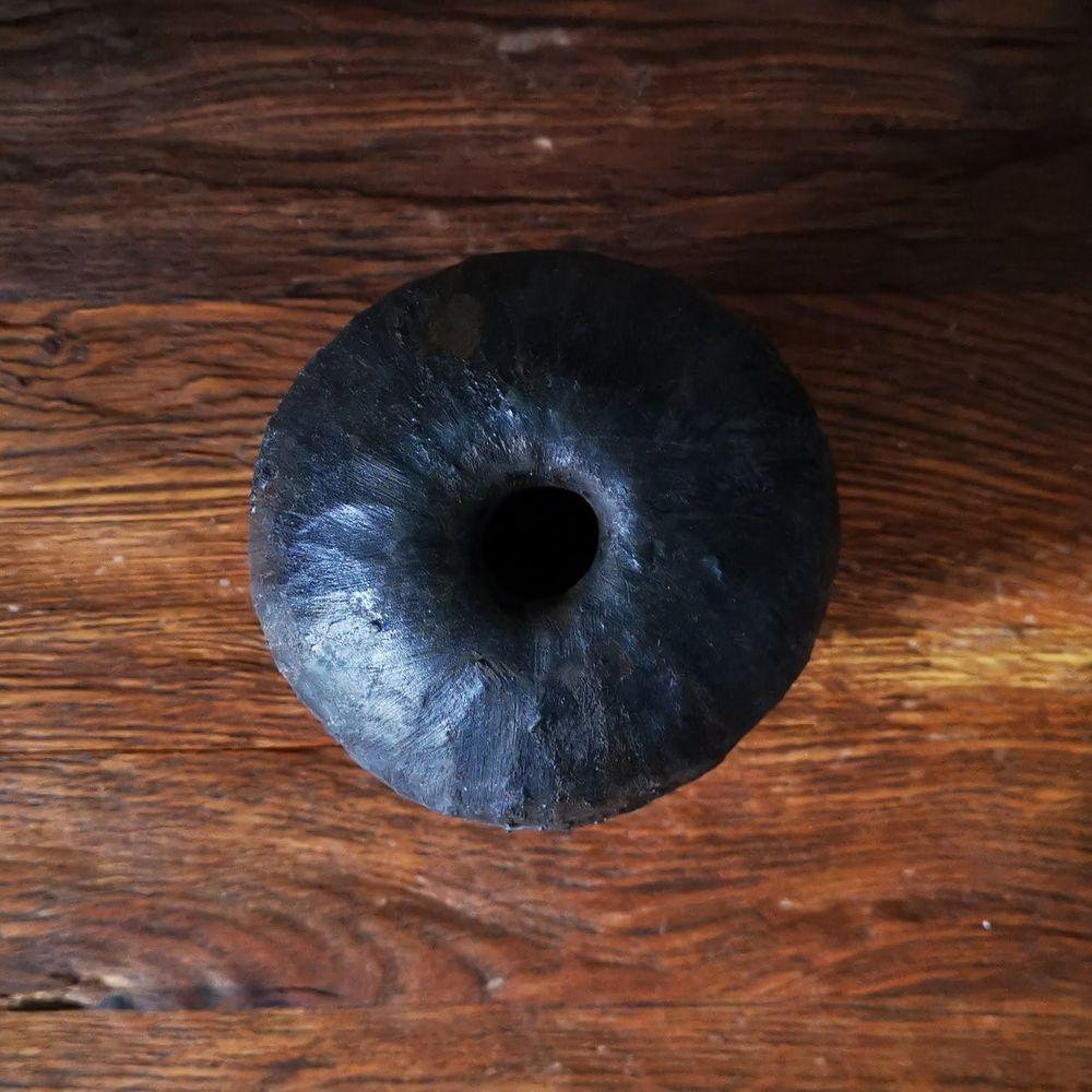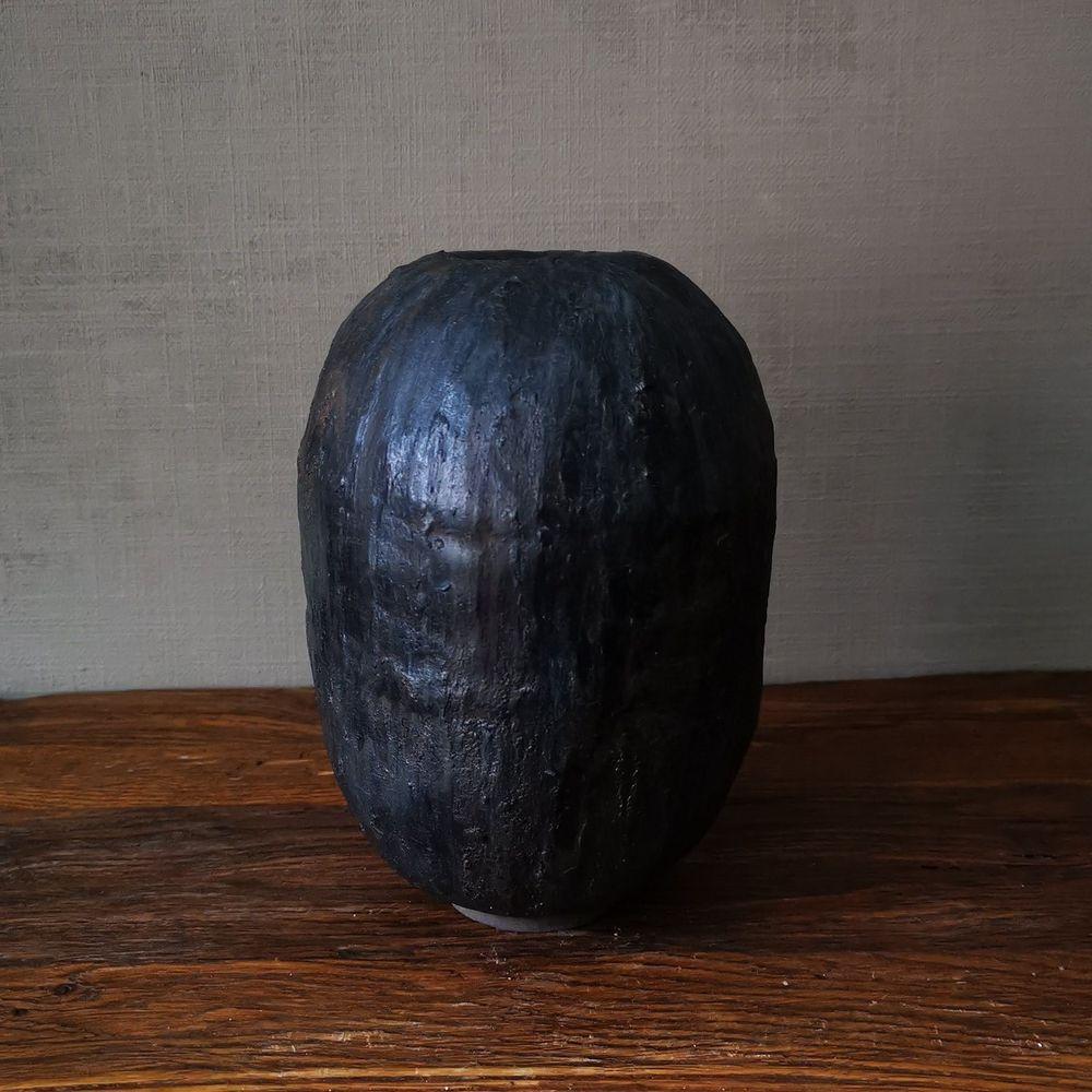 Stentøj med engrober, oxyd og flere glasuerer. H: 17,5cm. Dia: 11cm